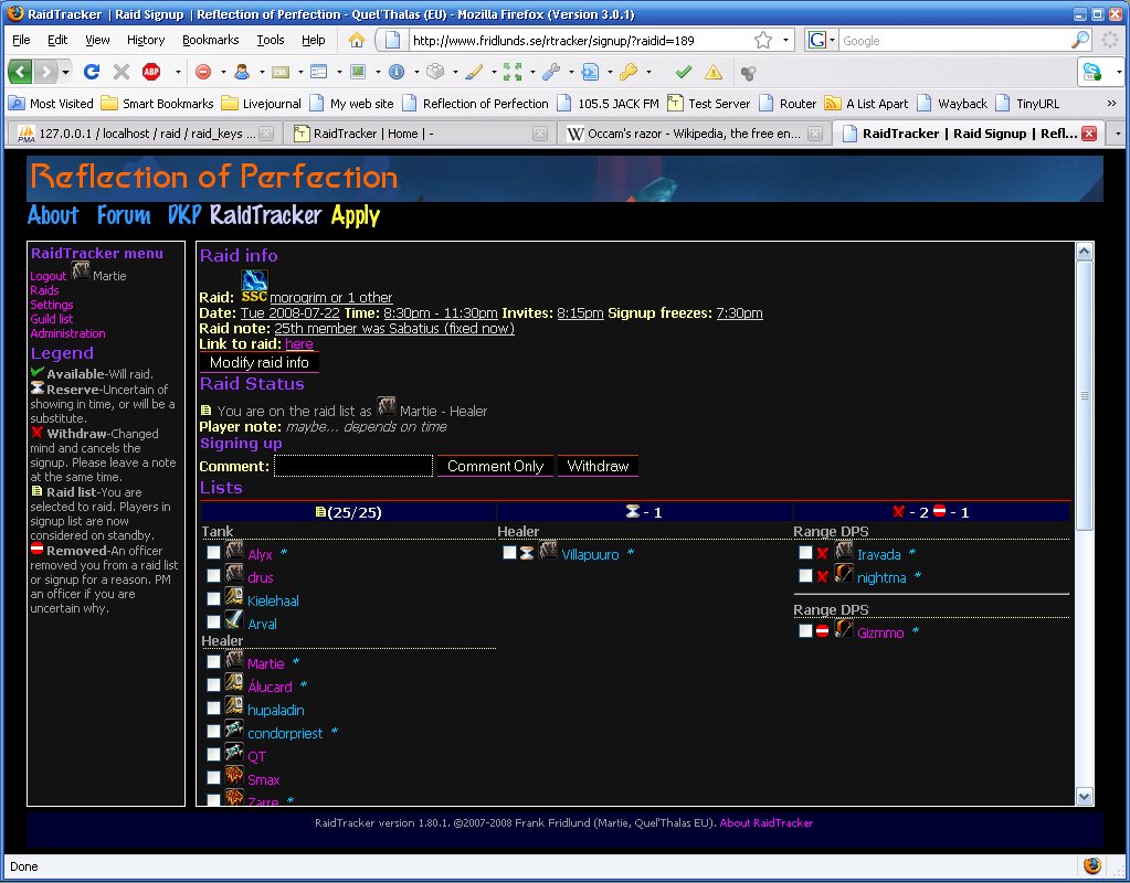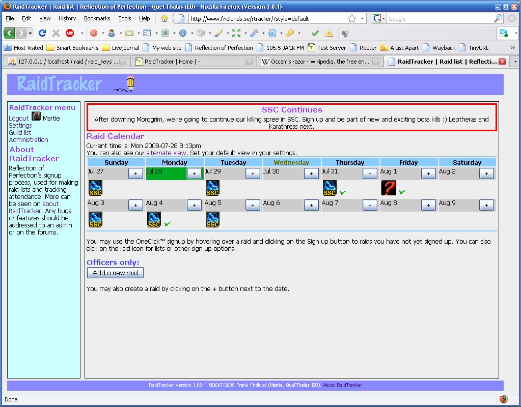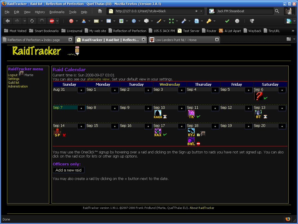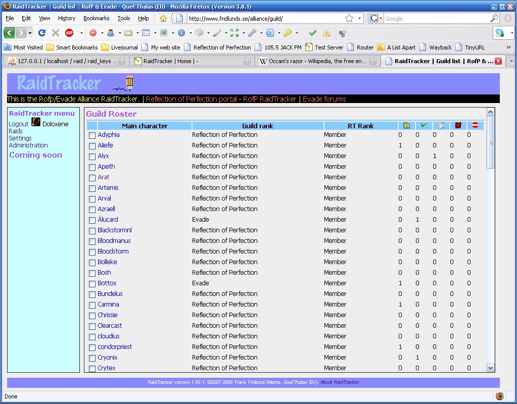 These are screenshot for RaidTracker version 1.90 in action. Version 2.x is very similar. Click to zoom in on any image. However, if you wish to see RT 3, you can visit the Demo page